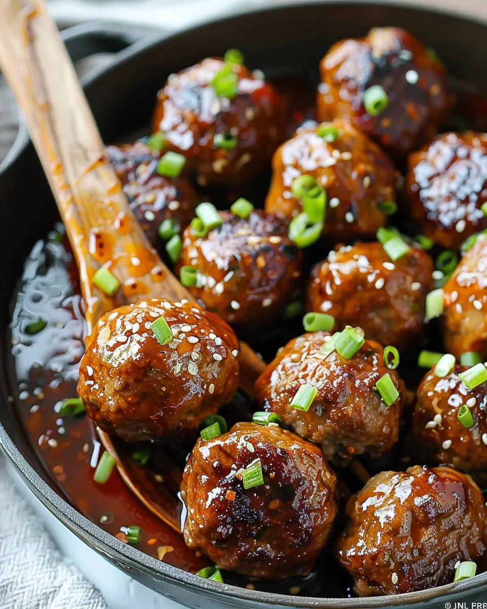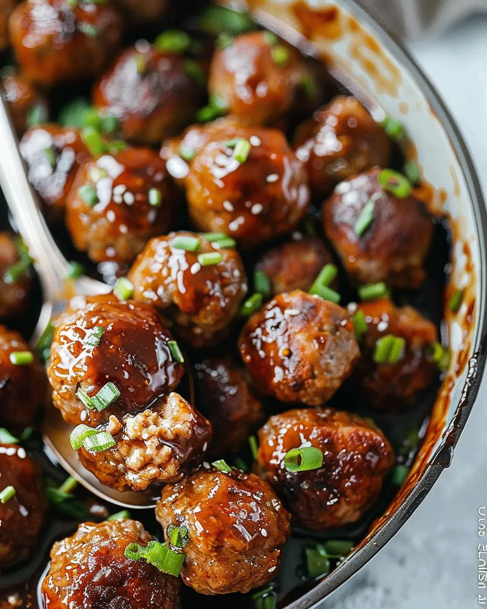 - Once meatballs are done, toss them in the sauce and serve warm, garnished with remaining green onions.