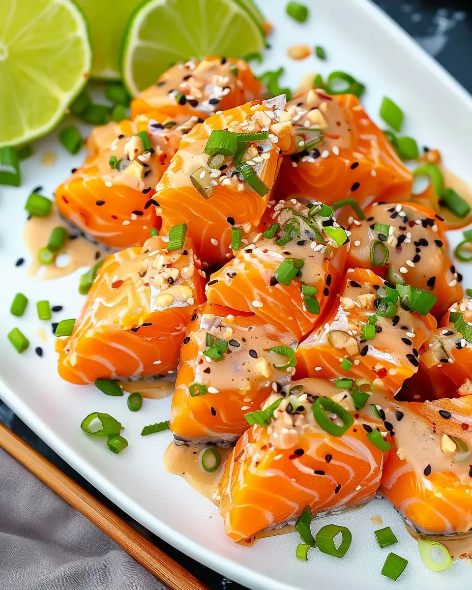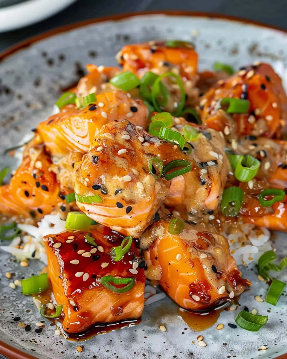 So, what makes this dish so special? It starts with perfectly cooked salmon—the health benefits of salmon are well-known, as it’s an excellent source of omega-3 fatty acids, which promote heart health and brain function. Combined with a luscious sauce that typically includes mayonnaise, sriracha, and a touch of honey, the flavors create a delicious balance that’s irresistible. The creamy and spicy elements complement the buttery salmon beautifully, making each bite a taste sensation.