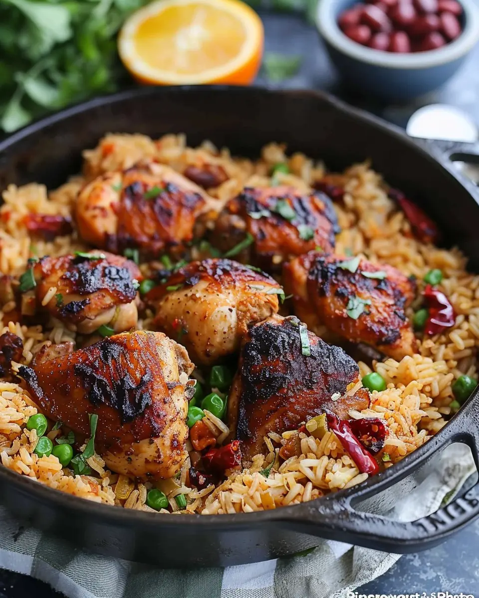 - Sear the Chicken: Once hot, carefully place the marinated chicken in the pan, skin side down. Let it sear for about 5-7 minutes until golden brown. Flip and do the same on the other side. This step locks in moisture and adds depth to your Caribbean chicken and rice dish.