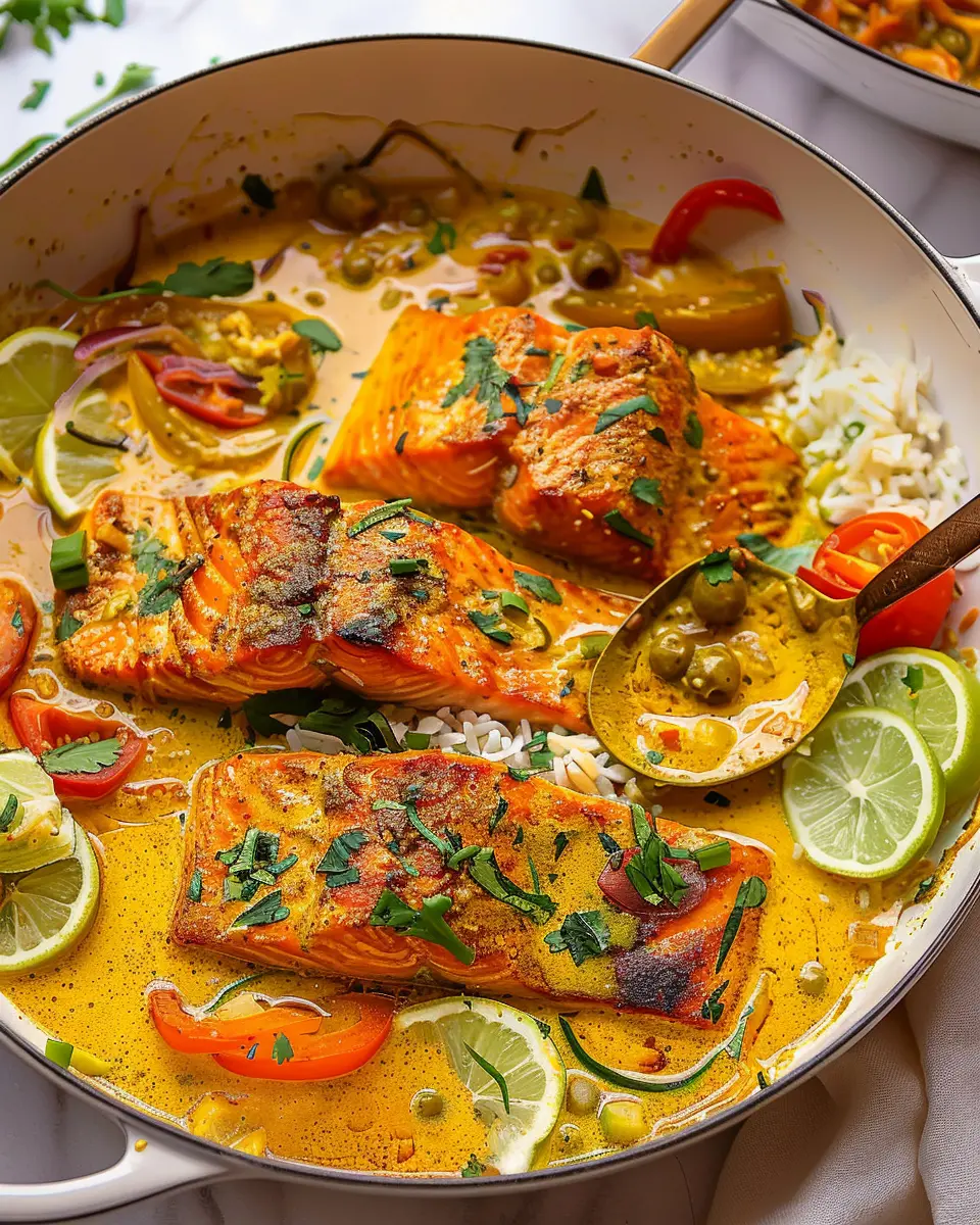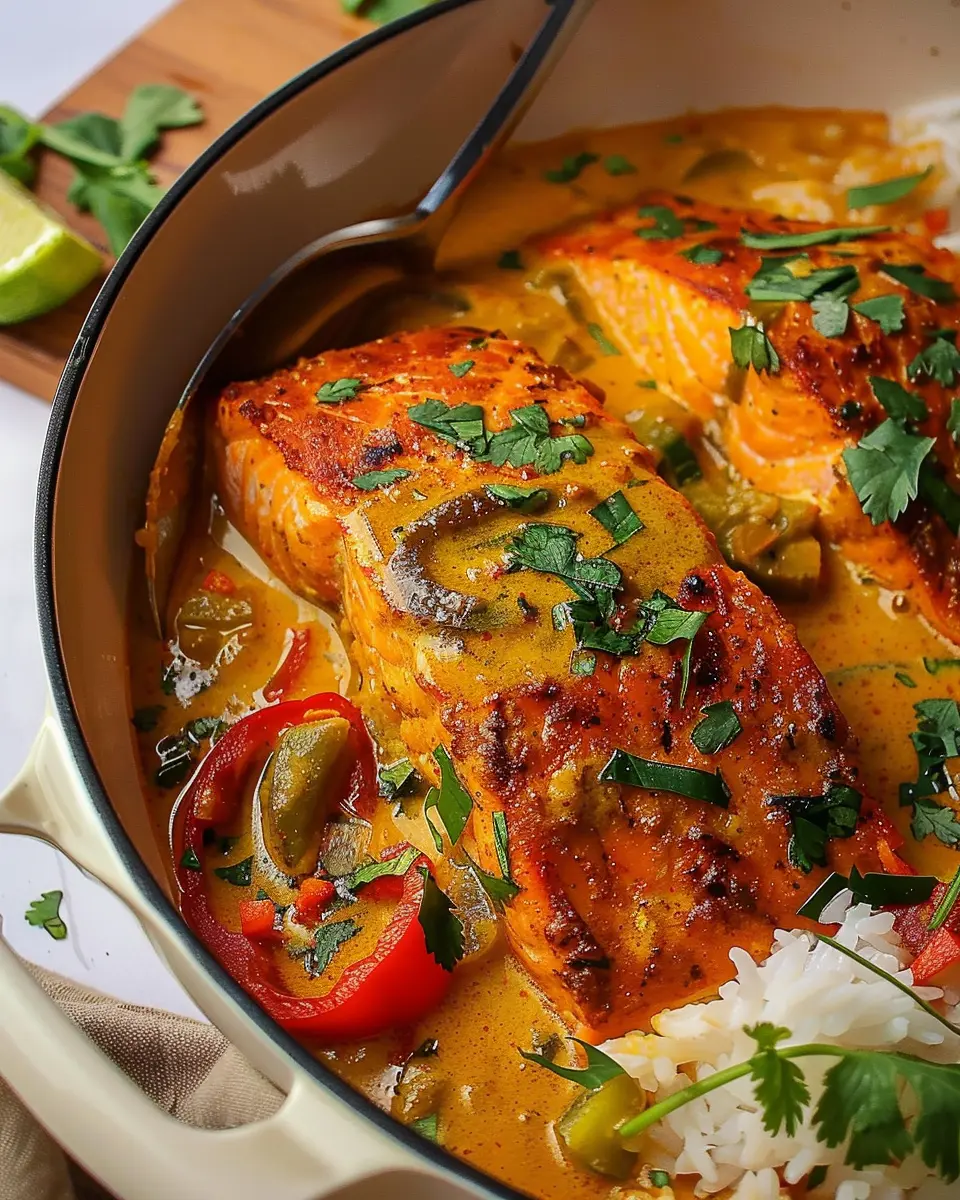 PrintCaribbean Coconut Curry Salmon: A Juicy Twist on Tradition