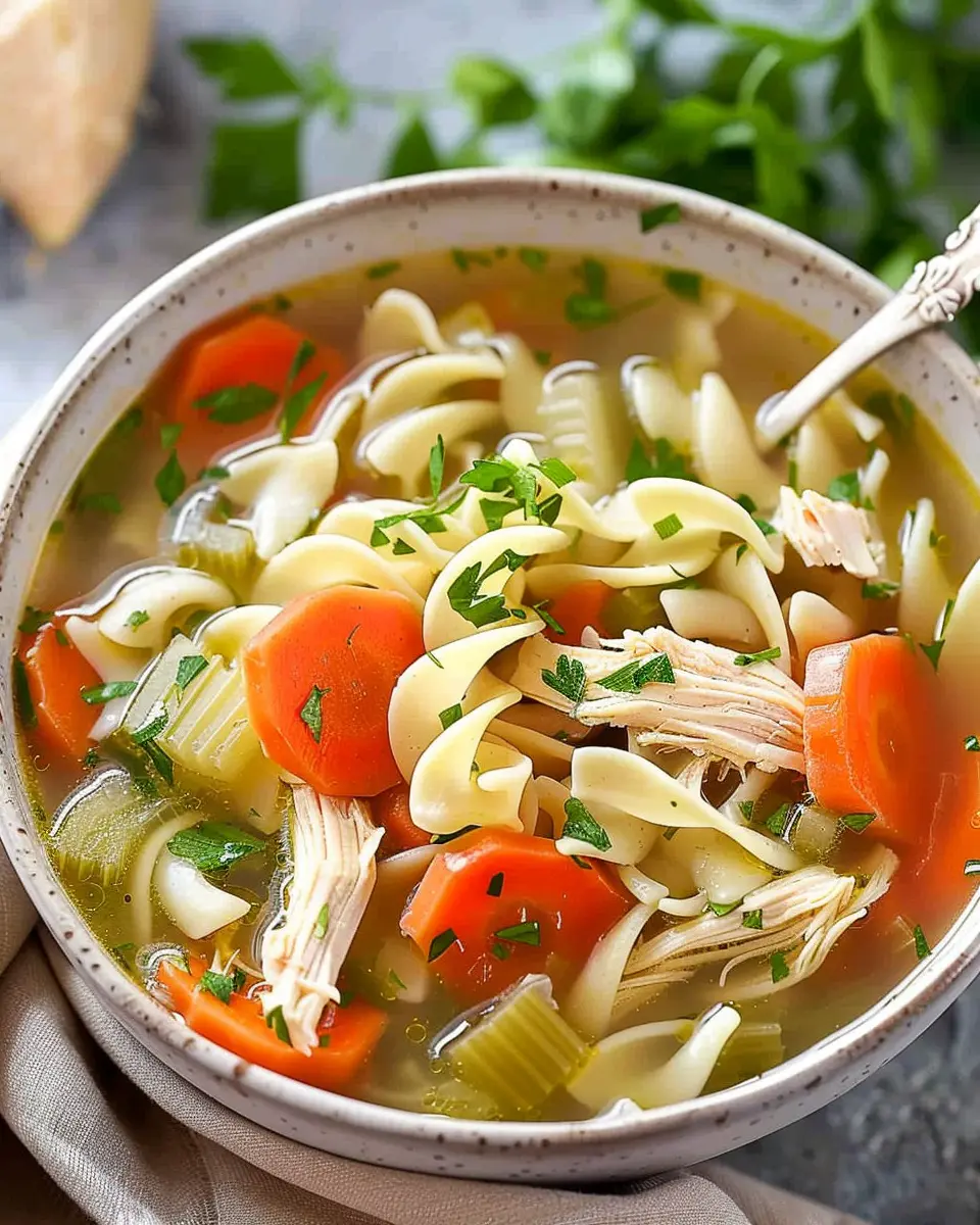 Chicken Noodle Soup: Easy Comfort with Turkey Bacon and Chicken Ham