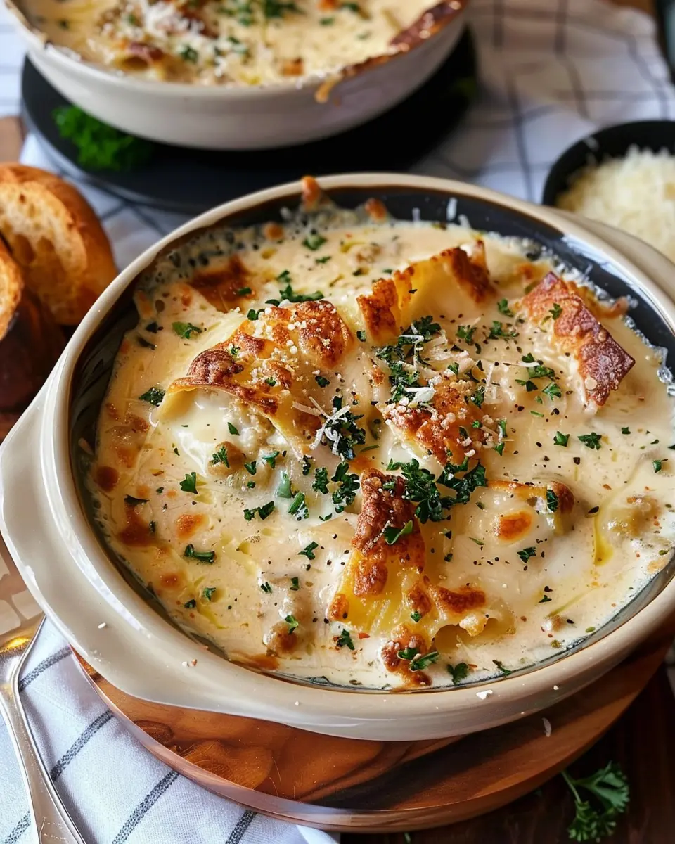 If you’re looking for a deliciously comforting dish that marries two beloved classics—lasagna and soup—then you’re in for a treat with this Creamy Alfredo Lasagna Soup. It’s not just another meal; it’s an experience that brings the rich, satisfying flavors of traditional lasagna into a warm bowl of creamy goodness. Picture this: tender pasta swirled in a luxurious Alfredo sauce, mingled with hearty bites of chicken ham and turkey bacon. Sounds divine, doesn’t it?
