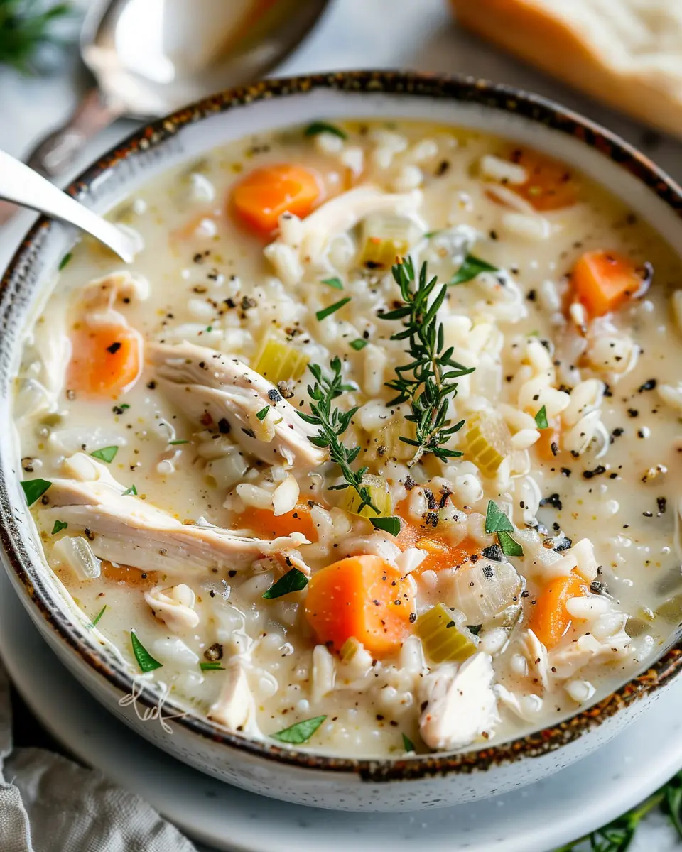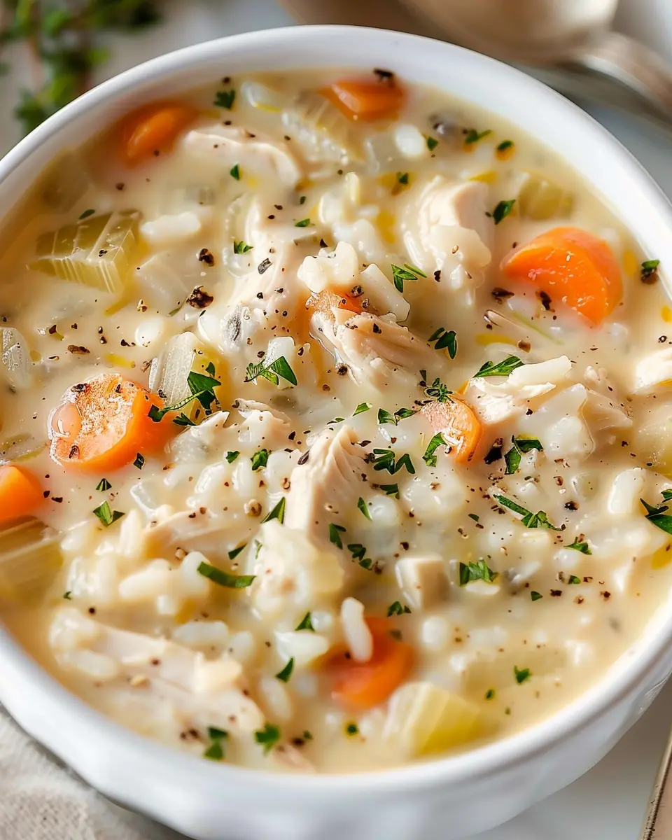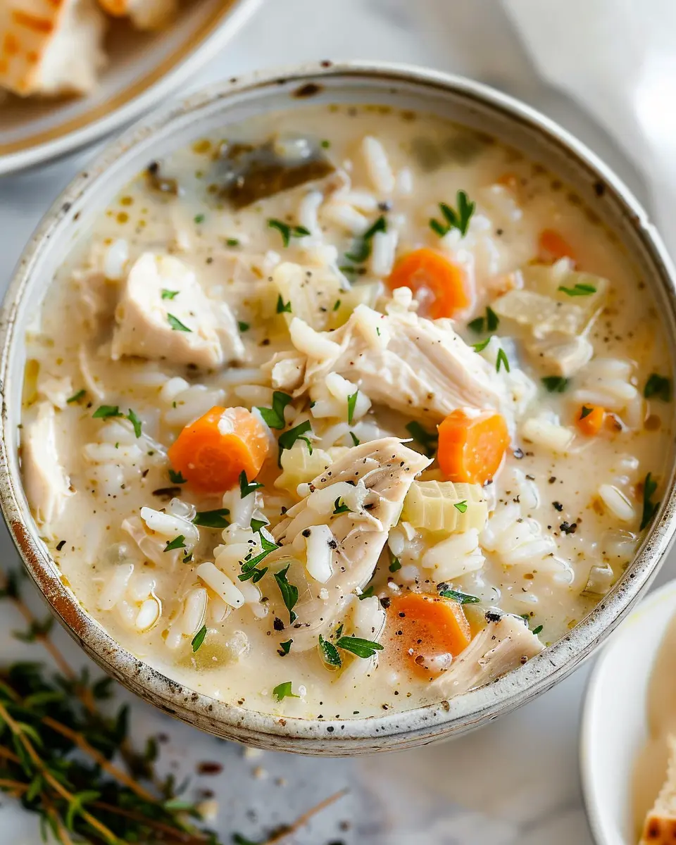 There you have it! A cozy, creamy chicken and rice soup perfect for any occasion. Ready to enjoy? Serve it with crusty bread or a simple side salad to round out your meal.