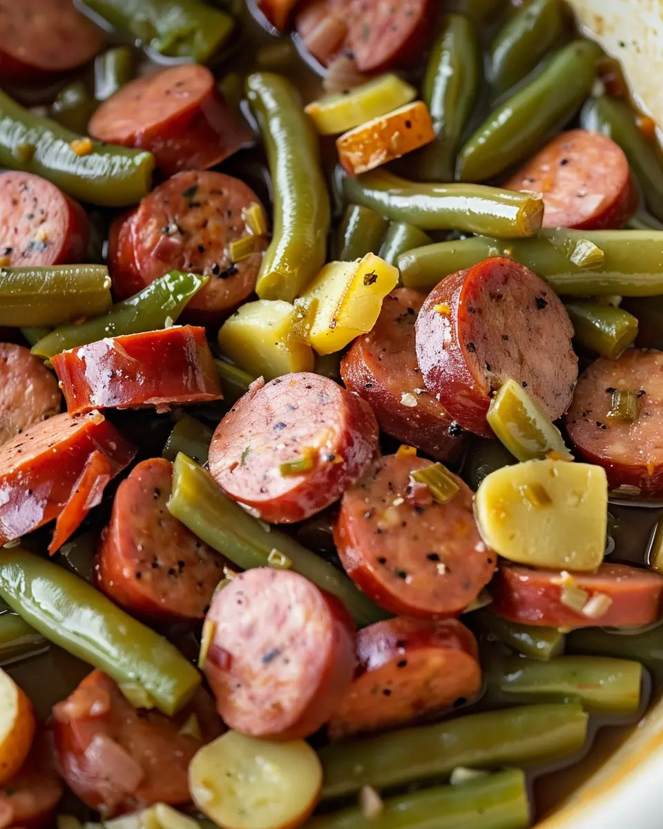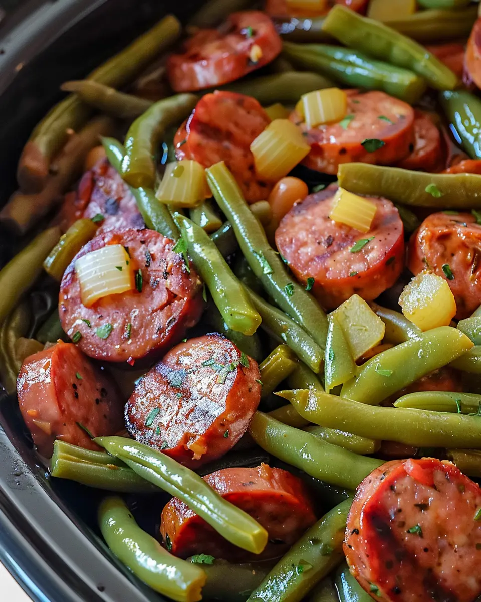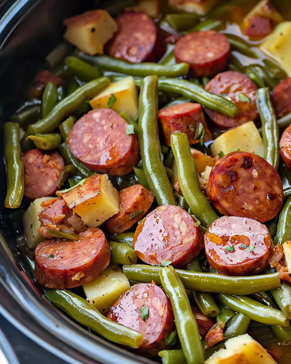 This easy crockpot recipe combines savory kielbasa with fresh green beans for a comforting meal.