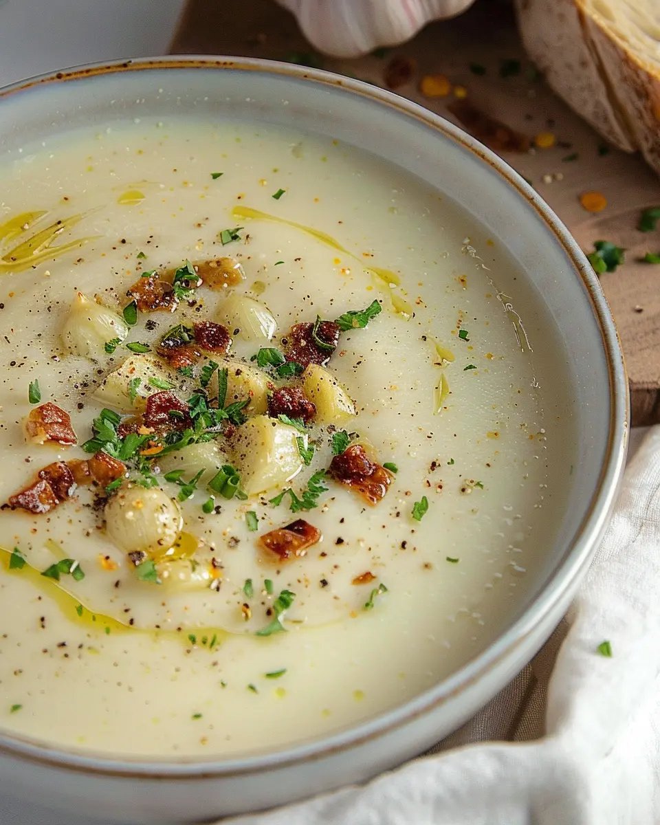 Garlic, often hailed for its health benefits, is a star ingredient in this recipe. It’s known for its potential to boost the immune system and provide antioxidant properties, making this soup not just comforting but also a nutritious choice. In fact, studies have shown that garlic can have various health benefits, including reducing blood pressure and improving cholesterol levels. Incorporating it into your meals, like in this easy roasted garlic soup, is a delicious way to harness those benefits.