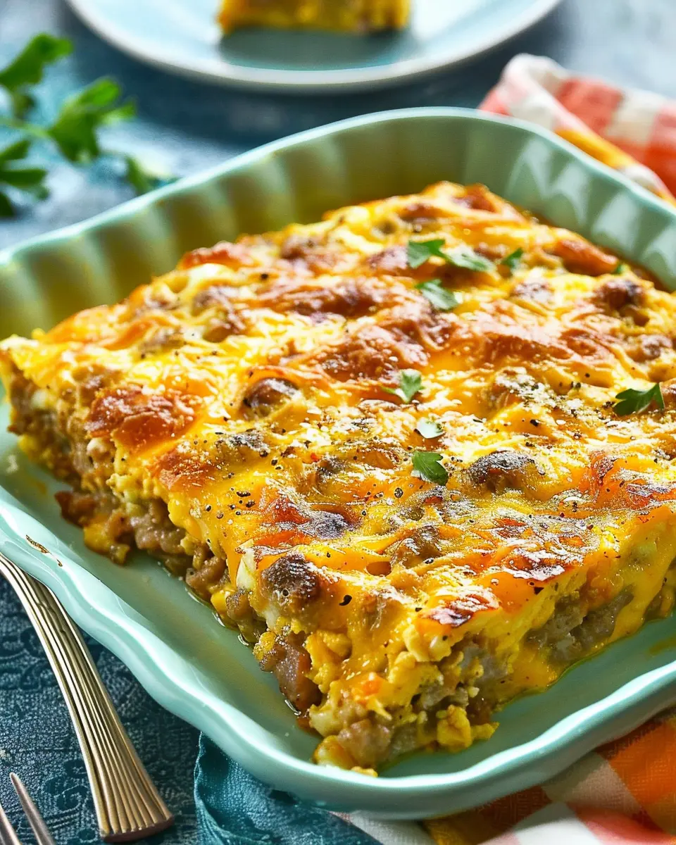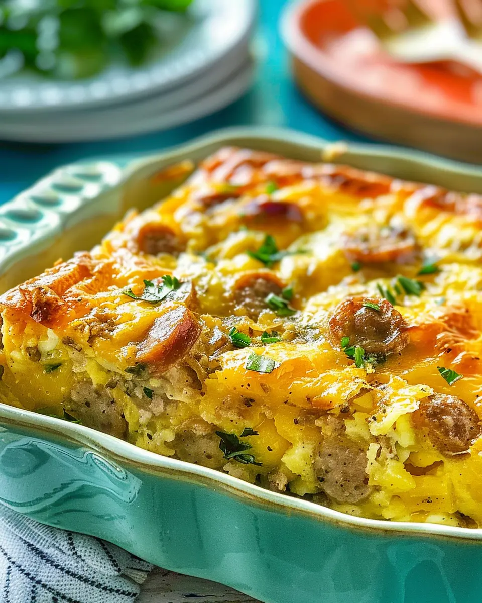 A delicious and filling casserole loaded with sausage and eggs, perfect for breakfast.
