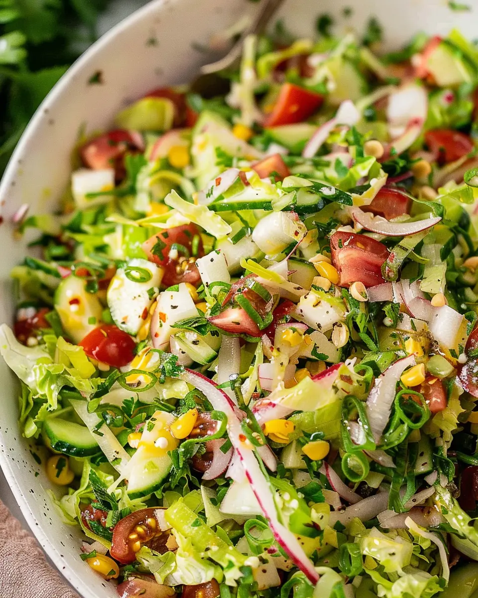 Simply toss all these ingredients into your big bowl and give them a gentle mix. Each bite will feature a delicious blend of textures and flavors—crunchy, salty, and refreshing. As you layer the ingredients, you may even start picturing future meals or gatherings where this vibrant salad takes center stage.
