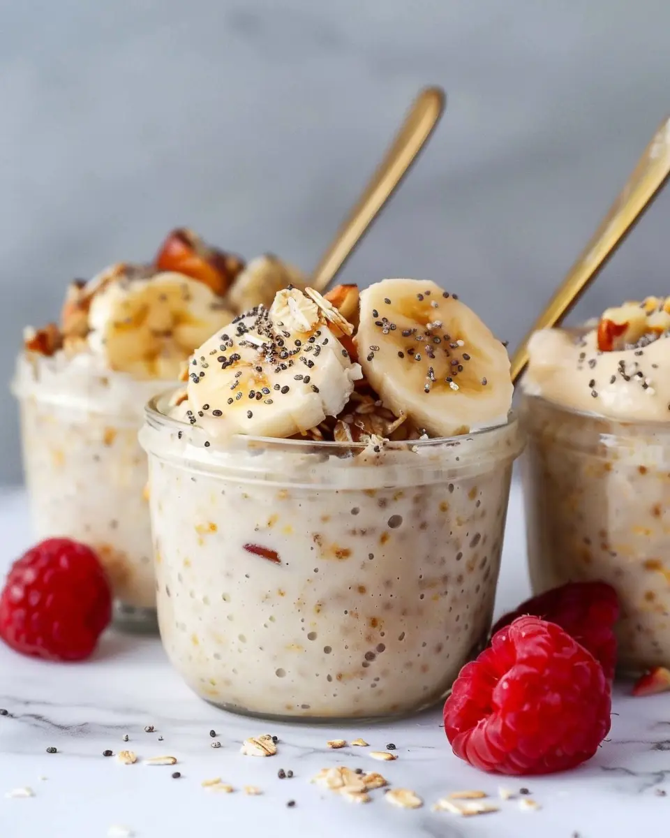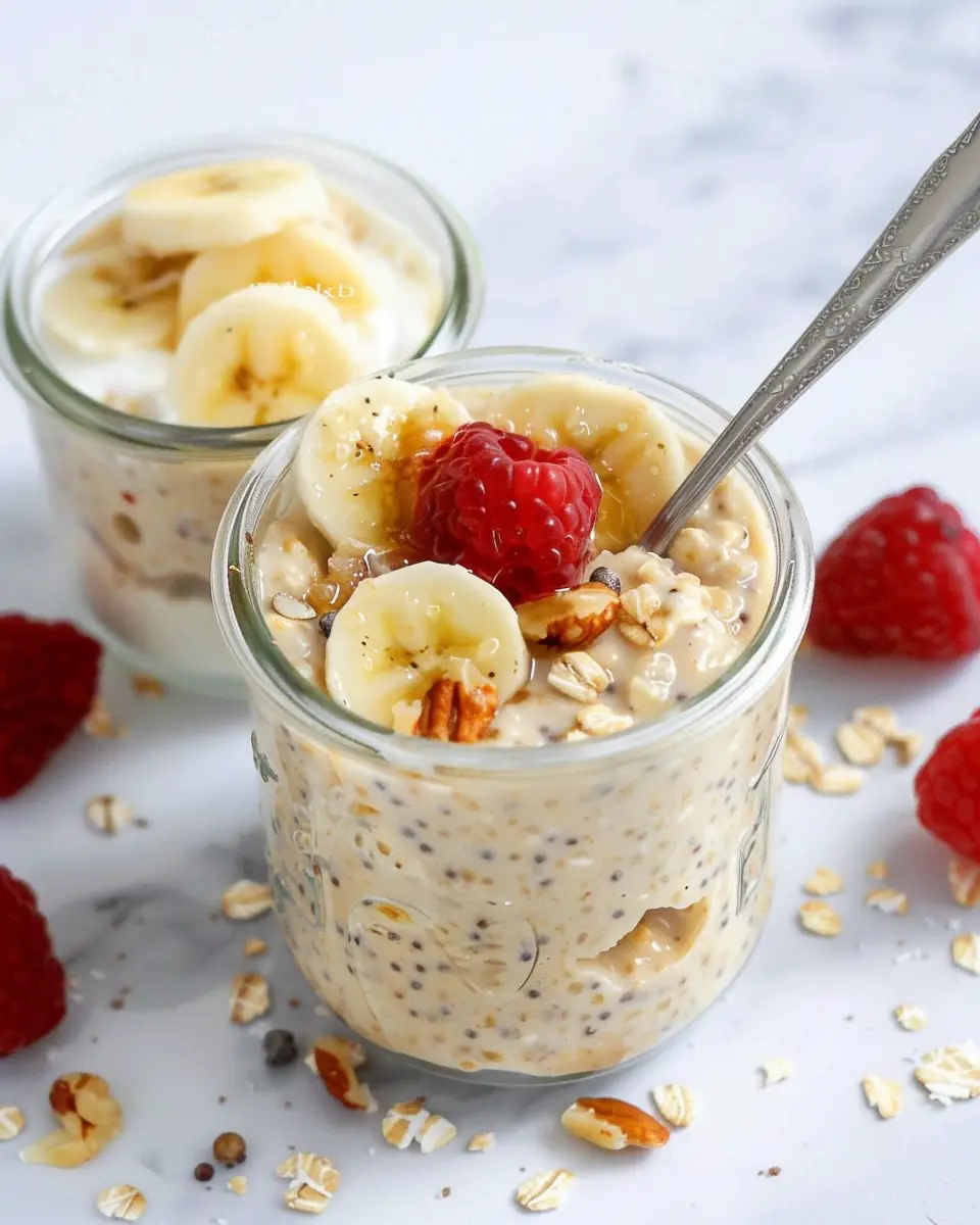 Get creative with your toppings! Here are some tasty ideas to complement your protein packed overnight oats: