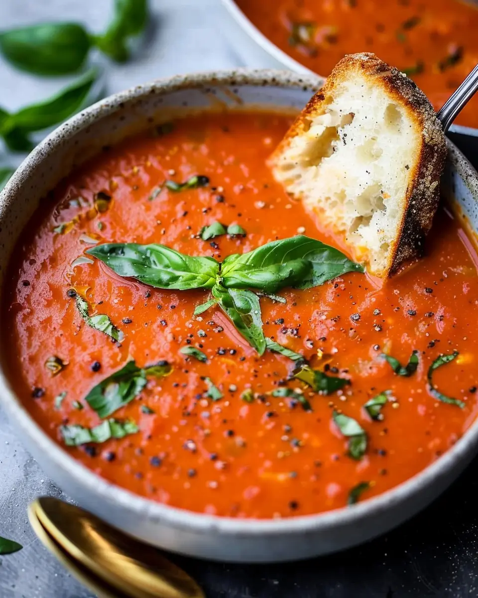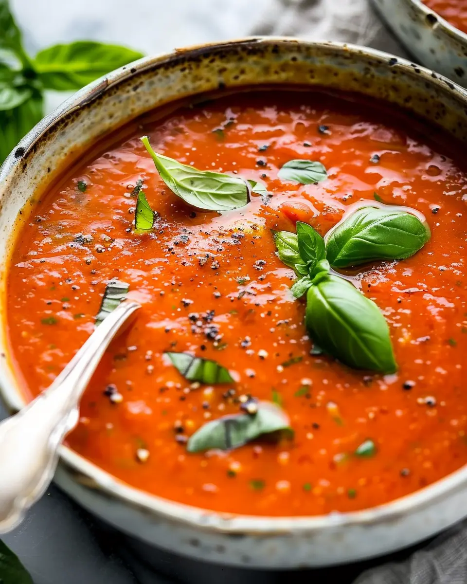 A warm and comforting roasted tomato basil soup perfect for any occasion.