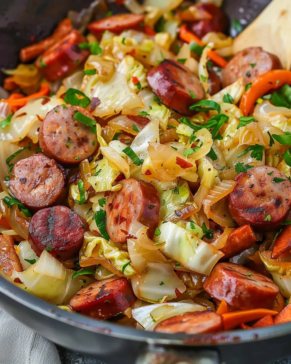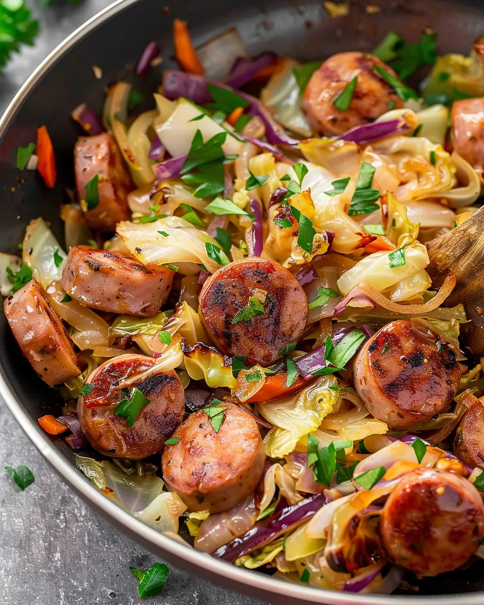 Cabbage isn’t just the star of this stir fry; it’s also a nutritional powerhouse. Rich in vitamins K and C, cabbage boosts your immune system and supports bone health. Additionally, it’s low in calories but high in fiber, making it a fantastic choice for digestion. A study from Healthline highlights cabbage’s ability to lower inflammation and its potential role in reducing the risk of chronic disease. So, enjoy your sausage and cabbage stir fry while reaping these wonderful health benefits!