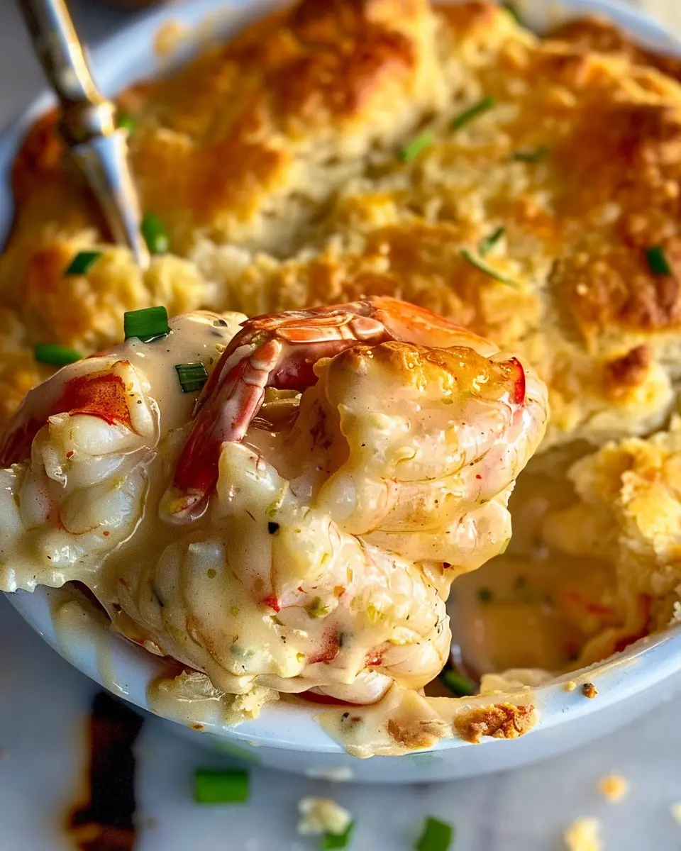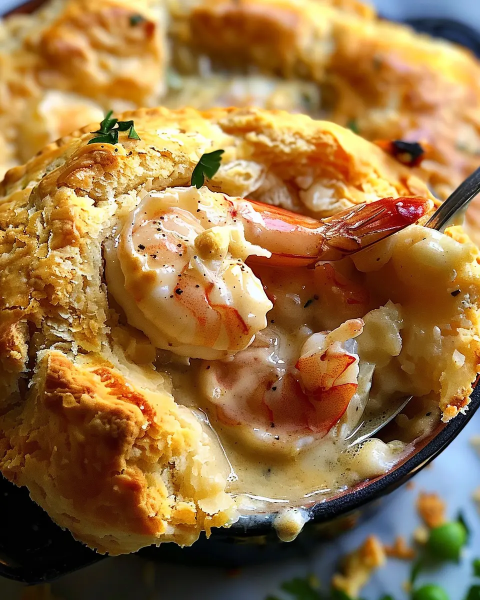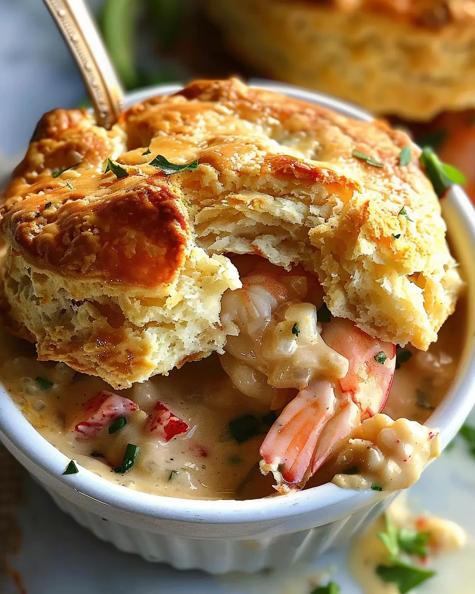 A delicious and hearty Shrimp & Lobster Biscuit Pot Pie that combines seafood flavors with a comforting biscuit topping.