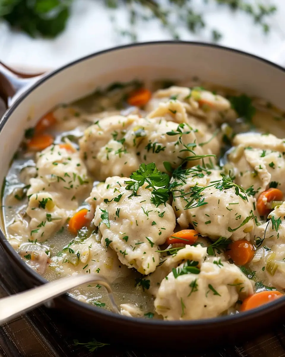 Absolutely! One of the beauties of Springtime Chicken & Dumplings is that it stores beautifully. You can cook the chicken and broth ahead of time, and simply refrigerate or freeze them. When you’re ready to enjoy your meal, just reheat and add the dumplings. For the best results, prepare the dumplings fresh on the day you serve to maintain their texture. If you have leftovers, they can usually be stored in an airtight container in the fridge for up to three days. Just keep in mind that dumplings may absorb broth over time, so a splash of water or broth when reheating might help.