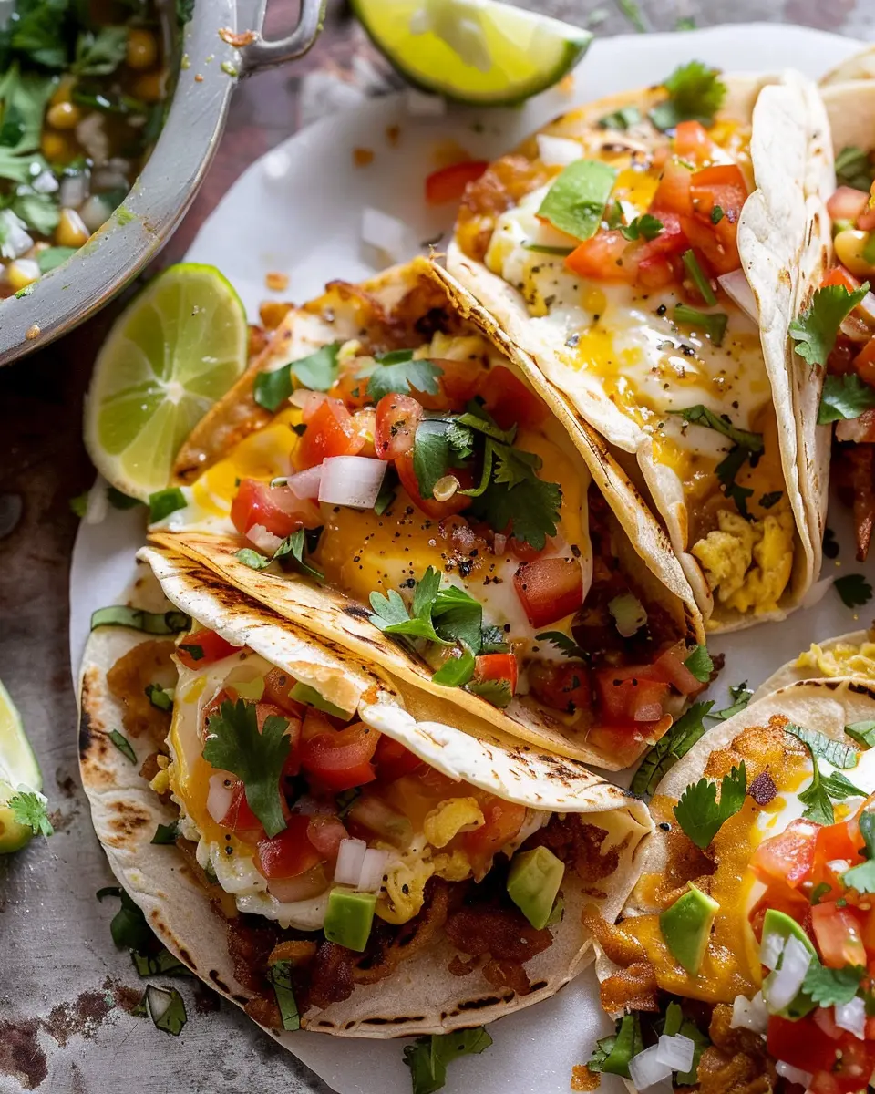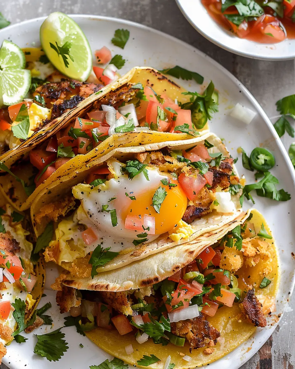 To wow your guests, arrange the crunchy breakfast tacos on a colorful platter. Add a side of fresh fruit like mango or pineapple for a vibrant touch. This not only pleases the eyes but also gives a hint of sweetness, balancing the flavors perfectly.
