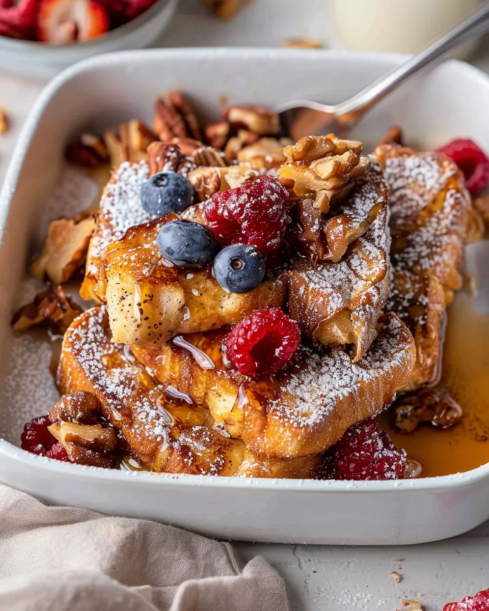 Toppings can elevate your vegan French toast casserole from delicious to divine! Think beyond the classic syrup and get creative: