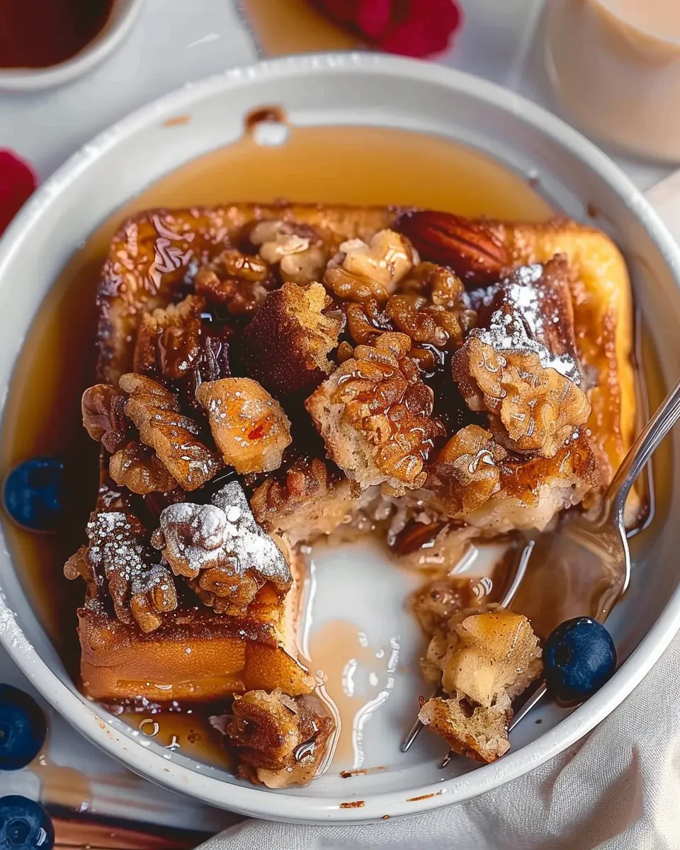 When your vegan French toast casserole is out of the oven, let it cool slightly. Serve warm, drizzled with extra maple syrup, or dusted with powdered sugar for a special touch. Fresh fruit, like berries or bananas, can elevate the dish even further.